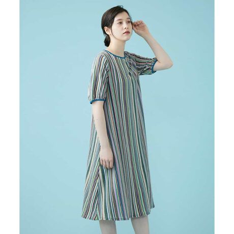 カラフルなストライプが清涼感のあるワンピ―ス。