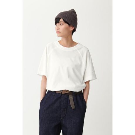 [型番:5952168502]ドライな肌触りが特徴のコットン素材を使用したカットソー。前後のラグラン線は切りっぱなしのパーツを重ねて振りステッチで押さえられた特徴的なデザイン。※こちらはウィメンズの商品です。