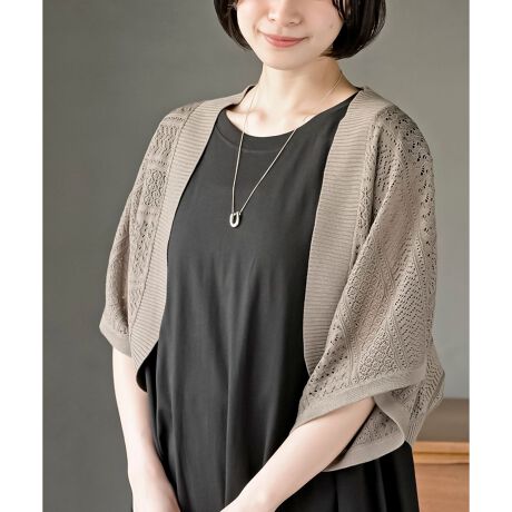 編み目切り替えの透かし編みが存在感を放ちつつ、繊細で女性らしい印象に仕上げてくれます。