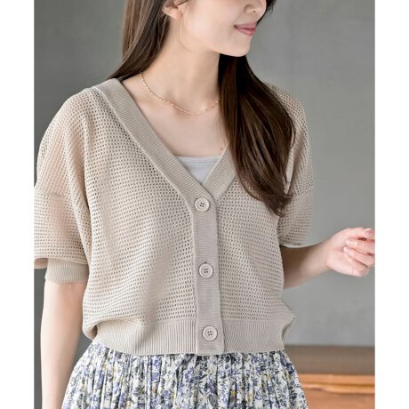 清涼感のあるメッシュの透かし編みカーディガン。