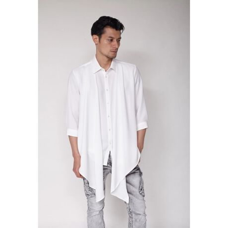 程よい反発感のあるストレッチサテンを使用した3WAYドレープ7分袖シャツ。