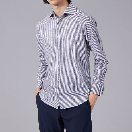 一枚着として織るように着ていただくも良し、ジャケットやカーディガンのインナーとしても使える汎用性の高いシャツです。