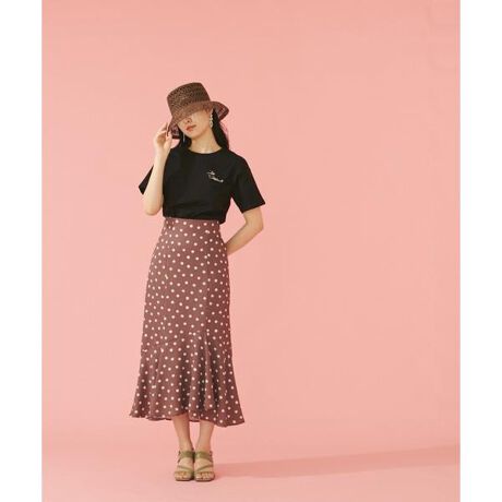 ジルバイオリジナルのポルカドットが夏ムード抜群のマーメイドスカート。手描き風のオリジナルドットがこだわりポイントで、大人っぽく着られます。ウエストをすっきり仕上げ、裾はあるくたびに揺れる、マーメイドシルエットのアシンメトリーデザインがポイント。ブラウスやTシャツを合わせるだけで、着映え感のある一枚です。※裏地付き ※撮影時照明の関係により、色味が違って見える場合がございます。またパソコン・スマートフォンなどの環境により、若干製品と画像のカラーが異なる場合もございます。予めご了承ください。商品の色味は、商品単品画像をご参照下さい。※商品画像はサンプルのため、色味やサイズ等の仕様に変更がある場合がございますので、予めご了承ください。※この商品は、素材の特性上激しい運動や極度な力が加わると、縫い目が開いたり目寄れ(織り糸が滑り、縫目が開く)する性質を持っています。ご着用の際はご注意ください。