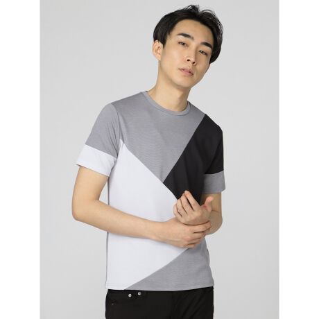 コーディネートの主役にぴったりな、クルーネックの半袖Tシャツです。遊び心を感じさせる配色の切替デザインで、存在感のあるルックスに仕上げています。一枚着としてはもちろん、ジャケットやシャツ、ジレのインナーアイテムにもぴったりです。