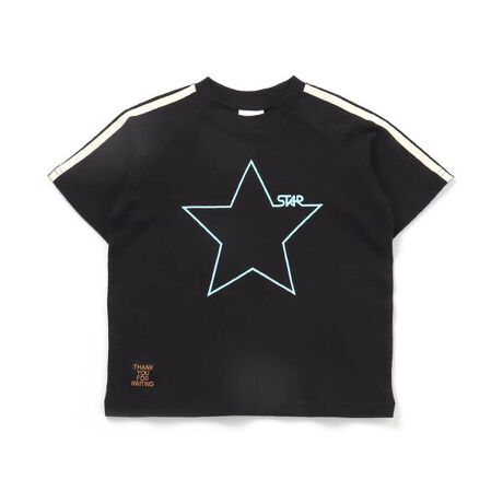 ちょっとお兄ちゃん向けのシンプルでクールなアイテム。袖ラインと星のモチーフがポイントです★J322902ウエストコードサイドラインハーフパンツと上下でセットで着るとセットアップ風の着こなしが楽しめます!