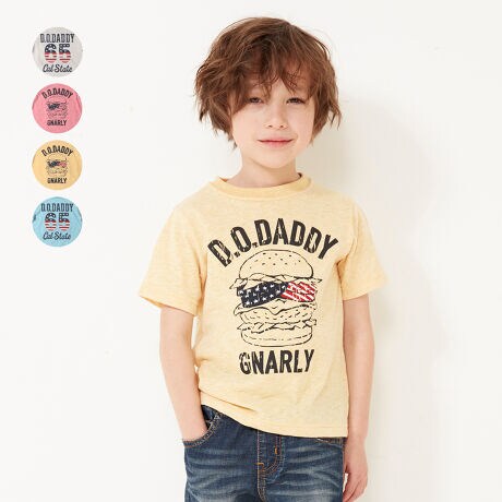 ダディの夏の定番アイテム。生地に透け感のあるスラブ生地を使用し、ユーズド感のあるアイテムに。アスレジャーを意識したグラフィックは着ると気分が上がる!男の子も女の子もユニセックスで着られるプリントTシャツ。【アイテム】トップス カジュアル お洒落 オシャレ かっこいい かわいい 可愛い 普段着 デイリーウェア お出かけ着 お外着 お外遊び着 子ども こども 男児 男の子 ボーイズ キッズ ベビーサイズ トドラーサイズ 幼稚園 保育園 小学校 通園 通学 小学生 2022年夏物新作 丸高衣料 半袖 女児 女の子 ガールズ 男女兼用 ユニセックス アメカジ アメリカン カジュアル ジュニアサイズ スクールサイズ made in Japan メイドインジャパン 国内生産 ロゴプリント ハンバーガー ジャンクフード