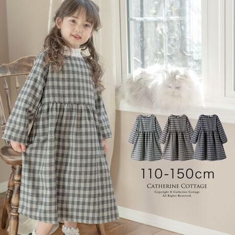 長袖グレンチェックワンピース