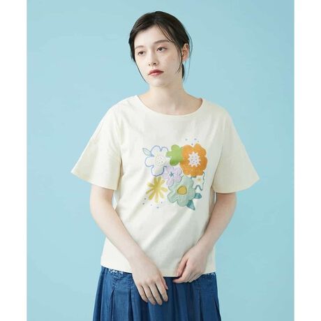 前面に入った大きなお花のモチーフが印象的なクラフトTシャツ。