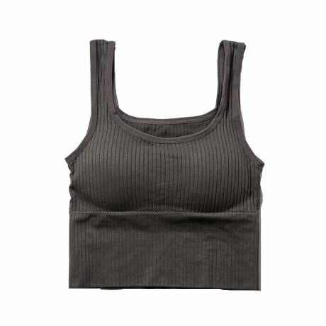 リブ素材でタンクトップタイプのカップ付きハーフブラトップ。