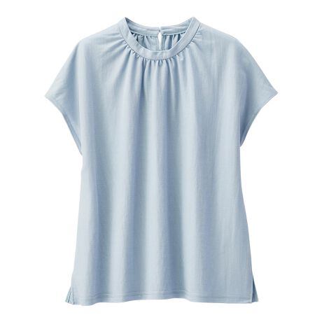 大人っぽく見せるプチハイネックデザインに、衿元ギャザーでこなれ感UP◎