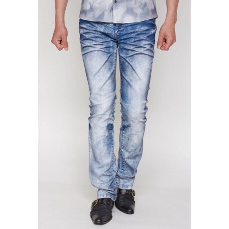 立体的な顔料ムラスプレーをプラスし、履きジワにも陰影を付けた特徴的なデニムにまとめています。