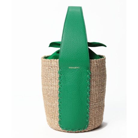 アバカを丁寧に編み上げたバケツ型のカゴバッグ。レザーハンドルと裏地の鮮やかなグリーンが、爽やかさを後押しします。ナチュラルな雰囲気をキープしつつもどこかモードな仕上がりが、大人のコーディネートをオシャレに格上げしてくれるはず。