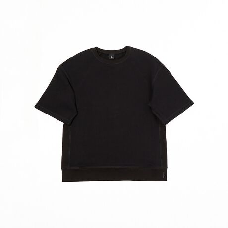 厚手の裏毛素材で着心地の良いビッグシルエットのショートスウェット。首元にはブランドアイコンのさりげない刺繍。セットアップとしてもコーディネートできるアイテムです。
