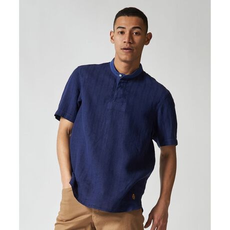 【120th Anniversary】リネンドビー ストライプボタニカルダイ バンドカラーラガーシャ