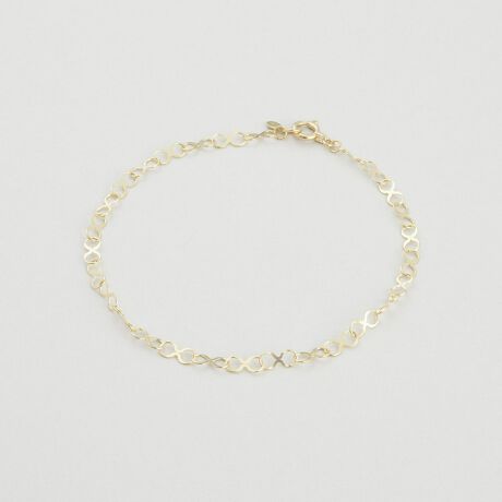 インフィニティーマークが連なったブレスレット。1本でも華やかな印象ですが、お手持ちのブレスレットや細身のバングルとのレイヤードもおすすめです。※天然石や天然素材を使用しているものは、サイズ・色味・風合いの違いや、若干の傷、内包物の有無などに個体差があります。予めご了承ください。