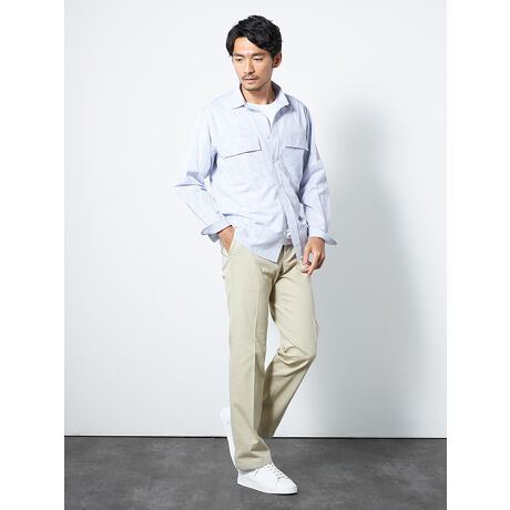春夏に向けたシャンブレーツイル素材を使用したストレートパンツ。