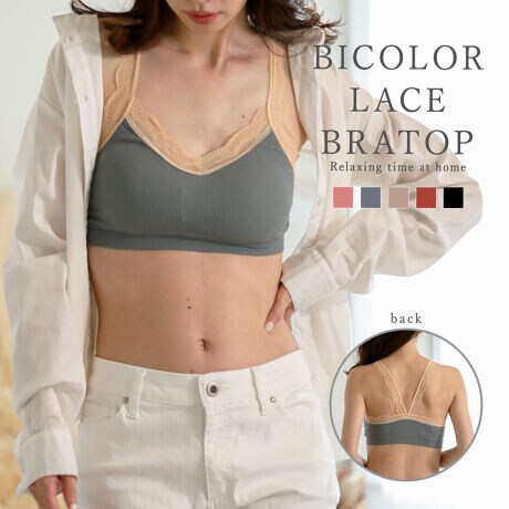 バイカラーのレースが可愛いカップ付きブラトップ。