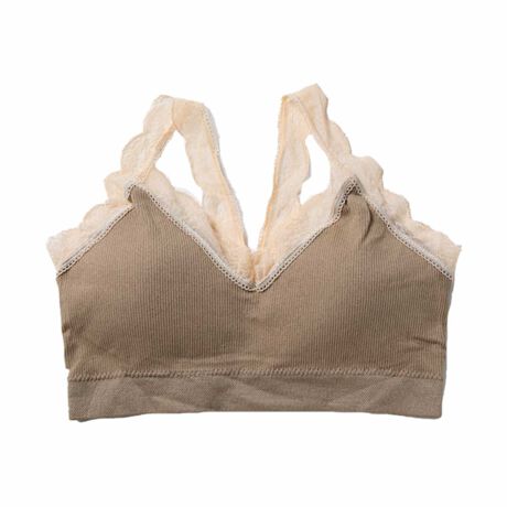 バイカラーのレースが可愛いカップ付きブラトップ。