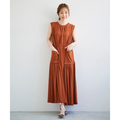強撚素材を使用した、ドライタッチのリラクシングなシルエットでこなれ感たっぷりに仕上げたデザインワンピース。