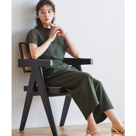 ワイドパンツなので気になる脚のラインもばっちりカバー。