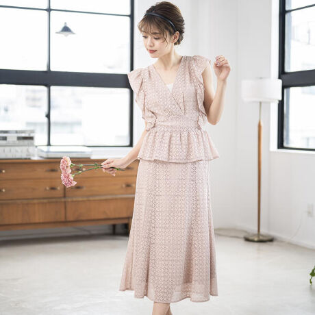 コーディネートが完成する繊細なレースが印象的なセットアップです。