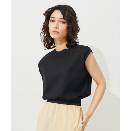 ピマ混コンパクト糸を使用したハイゲージの天竺素材のTシャツはシルケット+α加工を施しているので光沢がありながらも固くなりすぎず、適度な落ち感があるのでキレイな表面感を楽しめるノースリーブプルオーバー。肩が隠れるノースリーブデザインなので、肩から二の腕のラインがすっきり見えるのも特徴です。カラーは6色展開。1枚で着こなすのはもちろん、ジャケットのインナーとしても最適です。<br><br>※照明の関係により、実際よりも色味が違って見える場合があります。予めご了承ください。
