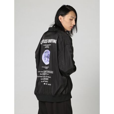 今っぽいスポーツ感やストリートテイストを演出するのに最適な、ボリューム感のあるMA-1ブルゾンです。バックのアースプリントが存在感抜群。ロングシーズン着まわせるライトアウターとして大活躍してくれます。