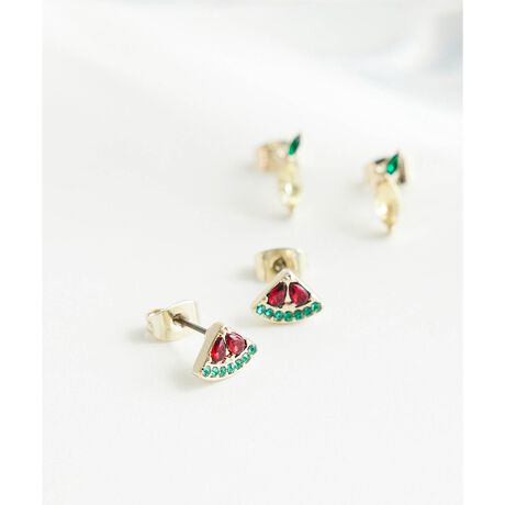 ・カラフルなビジューを使い、生き物や果物のモチーフを表したミニピアス。
