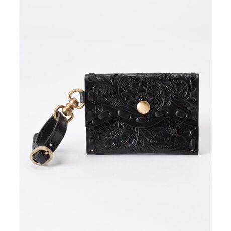 フラップシルエットが印象的な、マエストラデザインのカードホルダー。ストラップや外ポケットを添えて使い勝手良く工夫した、機能的なデザイン。手彫りの美しいデザインが映える一品です。メキシコの職人が1点1点丁寧にハンドステッチで仕立て、伝統的な草花を手彫りした定番のCARVING TRIBES(カービングトライブス)。軽く肌馴染みの良い上質な牛革を採用し、使うごとにオリジナルのヴィンテージ感を生み出し、経年変化による表情の変化もお楽しみいただけます。どんなスタイリングとも相性が良く、持つだけでコーディネートが引き締まるデザイン。非常に丈夫で、毎日愛用したくなる拘りが詰まった名品です。※天然皮革製品の購入にあたっての注意点※天然素材を使用し、手作業を加えている為一点一点風合いや色の出方・サイズが若干異なります。予めご了承下さいませ。この製品は天然皮革を使用していますので、使用を重ねるうちに色合いや風合いの変化などが見られます。使用中に摩擦により多少染料が他のものに付くことがあります。必要以上に摩擦しないよう注意して下さい。淡い色の衣類との着用は出来るだけお避け下さい。雨や汗、水に濡れた場合は特に移染しやすくなります。出来るだけ濡らさないように注意してください。乾燥させる場合は必ず陰干ししてください。天日、直火は硬化の原因になりますので、絶対にお避け下さい。日光や蛍光灯の光、熱、湿気は変質、変色、硬化、カビの原因になりますのでくれぐれも注意ください。