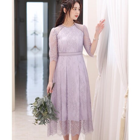 ■ケミカルレース×透け感が上品なタック入りワンピース
