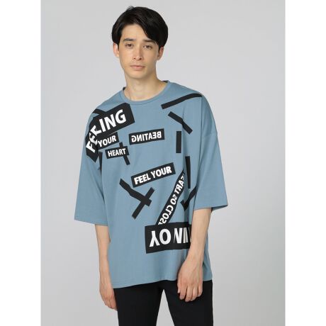 テープロゴプリント クルーネック 半袖BIGTシャツ