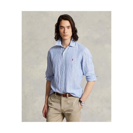 通気性に優れた薄手のリネンを使用したシャツ。暖かい季節をスタイリッシュに演出するアイテム。・クラシックフィット:Ralph Laurenで最もゆったりとしたシルエット / 低いアームホールとゆったりとした袖・ボタンダウンのポインテッドカラー。ボタン付き前立て・長袖、ボタン付きバレルカフス・快適なフィットと動きやすさを実現する、ボックスプリーツが入ったスプリットバックヨーク・左胸にシグネチャーのポニー刺繍・モデル身長185cm、着用サイズM※注意:柄の配置は、商品によって異なります。※ラルフ ローレンのシャツは、袖口がまくられた状態で納品され、そのままの状態で保管されている場合があります。デザインや商品特性を活かす為に、あえてこのような工夫をしておりますので、予めご了承ください。 【素材】・本体:麻 100% 装飾部分を除く【生産国】インド