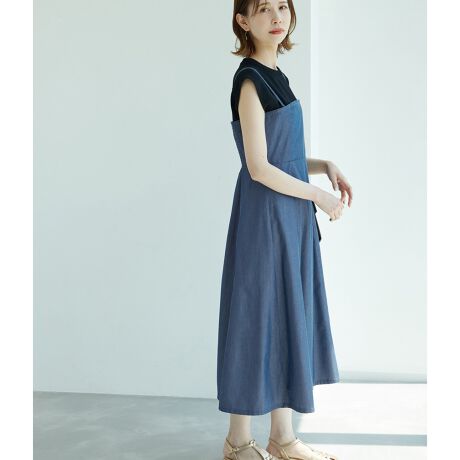 【胸もと安心のフィット感。広がるスカートラインもエレガントなベアワンピース。】