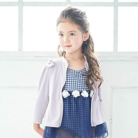 普段90を来ている娘に来年も着れるように大きめを購入。ちょうどいいサイズ感でした。肩のリボンもラッシュガードに珍しいデザインで可愛いです。