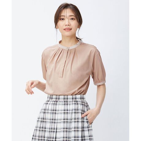 【イージーケア・接触冷感】プレーティングジャージー バンドカラー カットソー