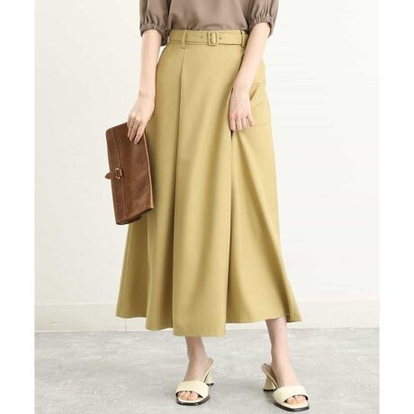 タック入りの程良いボリューム感のカラースカート。長めの丈はスタイリングの主役にもぴったり。裏地をなくすことで軽やかで涼しげな着心地で着用できます。