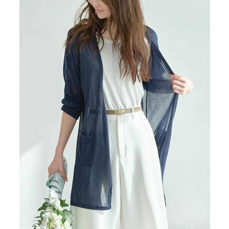 ポケット付きでシンプルすぎない、大人のためのシアーカーデです◎