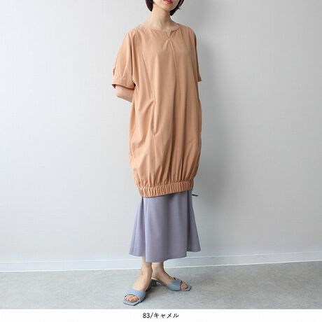 裾にボリュームをもたせたチュニック丈ブラウス。