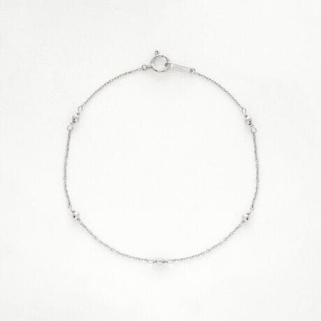 動くたびに光を受けてきらきらと輝くK18ホワイトゴールドのブレスレットは、ミラーボールがお手元のさりげないアクセントに。