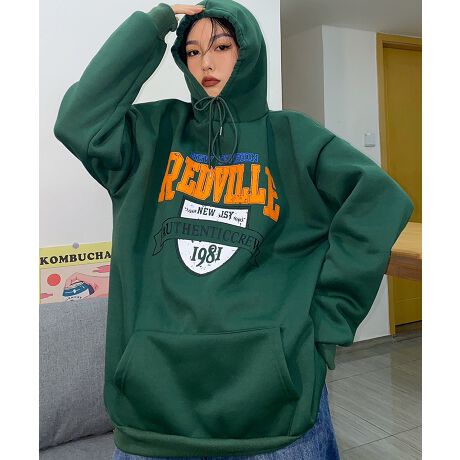 オーバーサイズ カレッジロゴ ルーズ スウェット パーカー