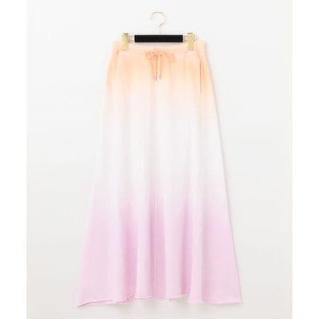 [型番:0222222166]裏毛素材でお作りした、肌触りの良いタイダイスカート。美しいグラデーションが映える、夏ムード高まるデザインです。自然なフレアラインがカジュアルさを抑え、女性らしく纏えるポイント。ウエストリボンでラフさをプラスして、夏らしいリラックススタイルを楽しめる一枚に仕上げました。フラットサンダルやかごバッグなど、夏小物を合わせてシーズンスタイルをお楽しみください。