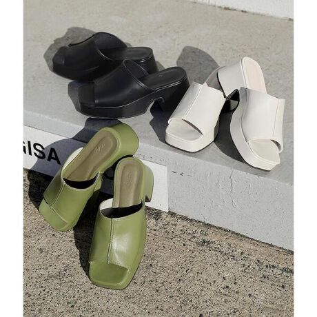 スクエアトゥスムースフェイクレザーサンダル
