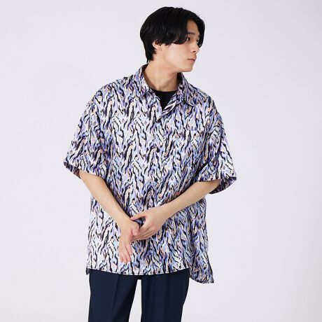 総柄プリント ビッグシルエット とろみシャツ