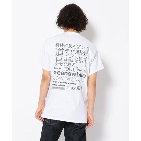 インパクトのあるバックプリントは、アトリエで看板として使っていた木彫りのデザインから引用。meanswhileを知ってもらうのに凄く良いデザインという事で、別注Tシャツを企画しました。【meanswhile / ミーンズワイル】ファッションの表面的で無稽な部分に道具としての機能を持たせたプロダクトを展開する国内のブランド。アウトドアの要素を取り入れたコートやジャケットなどアウター、バックパックなどのアイテムが人気。「日常着である以上、服は衣装ではなく道具である」「身体に最も近い道具」「デザインは目的ではなく手段」というコンセプト。ブランド名のmeanwhileは"所変わって”、meansは"手段”という意味。