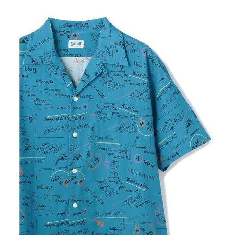 ブランドが得意とするグラフィックワークが光るハワイアンシリーズコットンとレーヨンの混合の素材感は取り扱いし易く、暑い夏に重宝します。ブランドの発祥地、ニューヨークにまつわるワードとモチーフを落書き調に柄を落とし込んだショットならではのハワイアンシャツに仕上がっている。【Schott/ショット】ライダースジャケットの代名詞ともいえるSchottの歴史は、1913年、ニューヨークでアーヴィン・ショットジャックショットの兄弟によって始まった。当初はレインコートを作る工場だったが、1928年に世界で初めてフロントジッパーを採用したライダースジャケット「Perfecto」シリーズを発売。ボタン仕様しかなかった当時、画期的なジャケットとして話題となり、その後のライダース史に大きな影響を与えた。そして、Schottの名を世界に知らしめたのが50年代に発表された星型のスタッズをエポレットに配した伝説のモデル”ワンスター“だ。 この新作こそが、映画『ザ・ワイルド・ワン(邦題「乱暴者」』で、マーロン・ブランドが纏ったと言われているモデルである。その後もラモーンズやセックスピストルズをはじめ、多くのロックミュージシャンに支持され、時代を超えた永遠の番として今なお多くの人々を魅了する。最近では定番モデルだけでなく、カジュアルラインも充実させるなど、常に時代に合わせて進化を遂げる革新性も忘れない。ライダースの歴史は永遠にSchottとともにある。