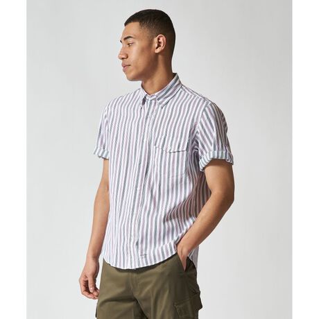 ■素材細番手のしなやかで上品な糸を使用し、二重織りで表のカラーと裏のカラーを変えたマルチストライプをオリジナルで開発しました。裏のカラーが表にも影響するため、深みのある独特の見え感とより鮮やかでポイントになる裏側の見え感が特徴的です。■デザイン定番のレギュラーボタンダウン、パッチフラップモデルです。素材の特性を余すことなく表現したロールアップスリーブ仕様です。