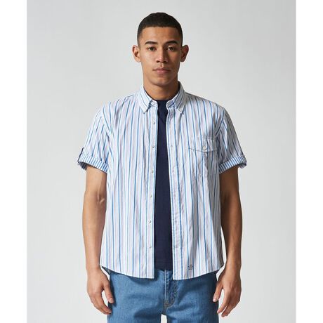 ■素材細番手のしなやかで上品な糸を使用し、二重織りで表のカラーと裏のカラーを変えたマルチストライプをオリジナルで開発しました。裏のカラーが表にも影響するため、深みのある独特の見え感とより鮮やかでポイントになる裏側の見え感が特徴的です。■デザイン定番のレギュラーボタンダウン、パッチフラップモデルです。素材の特性を余すことなく表現したロールアップスリーブ仕様です。