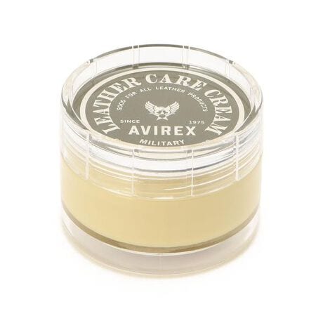 【AVIREX レザーケアクリーム】皮革に新しいオイルを加えて、柔らかさとなめらかさを保つクリームです。●皮革に新しいオイルを加えて、柔らかさとなめらかさを保ちます。●主成分のラノリンは、動物性の脂肪ですから皮革によくなじみます。●効果の高い防カビ剤を配合しているので、保管時のカビの発生を抑制します。●皮革の表面にクリームをムラなく塗ってから、柔らかな布で充分に拭き込みます。●ベタつかず、シットリとした仕上りとなります。無色ですから色はつきません。〈使用上の注意〉●革の種類によっては(特に淡い色の革やヌメ革調のもの等)色が濃くなり、元にもどらない場合があります。必ず、目立たない部分で試してからご使用ください。●高温、直射日光を避け、子児の手の届かないところに保管してください。【AVIREX/ アヴィレックス】いくつものフライトジャケットをコントラクターとして納入してきた。AVIREXは高い機能性を持つフライトジャケットの魅力を一般市場にも広めるため、その要素を随所に取り入れたサープラスウェアも創り出している。その無駄の無いデザイン、ノスタルジックな味わいは世界中の多くの人々から支持され続けている。大空に思いをはせた飛行家(アヴィエーター)を称えるAVIREX(空の王様)から生まれた名である。■お使いのパソコンのモニターによって、実物商品とカラーが異なって 見える場合があります。誠に申し訳ございませんが、ご理解下さいます様お願いいたします。■当ショップの在庫数は 直営店舗の商品も含まれています。在庫数が日々変動する為、ご注文頂いた時点で在庫が完売になっている場合がございます。 ■サイズ表は、製品の生地や織りなどの特性により、多少の誤差はございます。予めご了承ください。