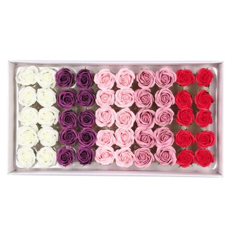 アレンジ自在!素材として使えるソープヘッドが発売。石鹸の素材で作られた小ぶりなソープヘッドが、5色×各10個・合計50個入ったアソートセット。茎に挿してブーケのように束ねたり、箱に詰めてフラワーボックスを作ったり、ワンポイント使いや作品の隙間を埋めるのにぴったり。(※ヘッド部分のみの販売です。)水をあげるなどのお手入れが不要!枯れることなく、長く楽しめるのが嬉しい。優しい石鹸の香りが広がり、彩りを与えてくれる♪