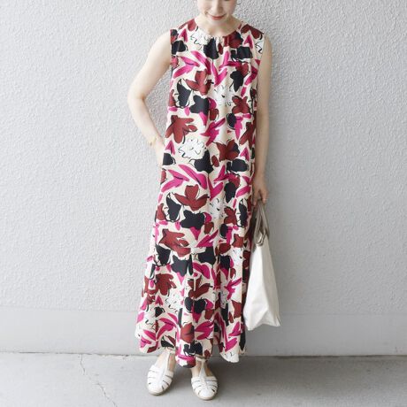 小花柄と違い甘くなりすぎず、大人の女性におすすめのワンピースです。